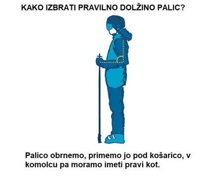 Obrnite palico na glavo, primite jo tik pod krpljico in postavite na tla. Vaša roka mora biti upognjena v komolcu pod pravim kotom (90°).