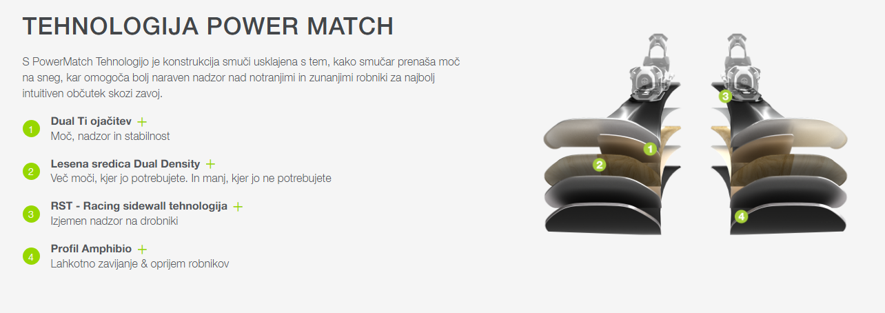 Ojačitev Mono Ti zagotavlja ravno pravšnjo mero moči in oprijema, kar omogoča izjemno stabilnost in natančnost pri vsakem zavoju. Smuči se ponašajo z močnim odbojem in vrhunskim oprijemom robnikov, zato so odlična izbira za smučarke, ki uživajo v karving slogu in želijo lahkotno, a zmogljivo vožnjo.